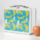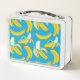 Yellow bananas, blue background pattern metal lunch box