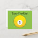 Yellow Billiard Ball Number One Personalise Holiday Postcard