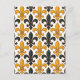 Yellow Black Baroque Fleur-de-lis Pattern Design Postcard