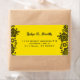 Elegant address label with random black circle pattern on yellow background.