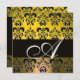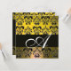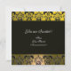 YELLOW BLACK DAMASK MONOGRAM , white Invitation