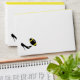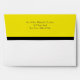 Stylish football theme envelope, done in white, with a yellow back flap, with a black stripe. A solid black lines the inside of the envelope and cute graphics of a black high heel kicking a black and yellow football, decorates the left front corner of the envelope. Return address done in black text, on the back flap, is ready to personalise with your information. Great finishing touch to our black and yellow football themed couple's wedding shower invitations.