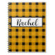 Beautiful Yellow and Black Gingham Pattern Personalised Notebook, is a classic design that contains a chequered look or buffalo plaid, gorgeous colourful design. Buy Today!