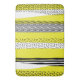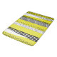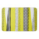 A bright and modern bath mat featuring varieties of hand drawn patterns with yellow accent.
