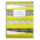 A customisable notebook featuring varieties of hand drawn patterns with yellow accent. Personalise the notebook by adding your name and short text. You can also remove the text and the tag if you only want the pattern.
