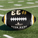Yellow Black Name Number Team Photo Football. The text is trendy white and yellow typography on a black background with yellow and white stripes. The football includes placeholders for a player's photo, name, team name, number and year. Perfect sports keepsake for athletes and teams.