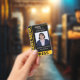 Simple vertical press ID in black with an eye-catching yellow color accent. News Media is written along the side, with Press beneath. Personalize this press ID template with the name of the reporter or photographer, their work title, ID photo, and the name of the publication that's sent this reporter out into the field. Add expiration date at the top. On the back of this practical journalist ID badge, personalize the QR code and add additional text.