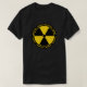 Yellow and black radiation symbol with warning text on T-shirts in assorted styles and colours.