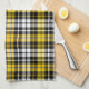 Yellow Black White Plaid Tartan Pattern Design Tea Towel