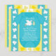Adorable blue baby boy shower invitation features a background of cute blue and yellow baby shirts and a stork on the front of this adorable blue and yellow baby boy shower invitation. Add your details to the front and/or back by simply choosing the "Customise it!" button to begin adding your event details, font style, font size & colour, and wording. Please note - all of the invitation designs you will find on Zazzle are printed graphics on flat paper stock with no actual jewels, bows, raised, embossed, or added parts or pieces.
