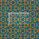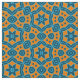 Seamless decorative geometric pattern featuring geometric shapes in blue shades on a yellow background.