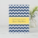 Personalised baby shower invitations in elegant and modern dark navy blue, bright lemon yellow and white fun chevron zigzags pattern. Customisable with your text, contact us to request a colour change.