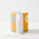 Painting of yellow and blue daisy flowers and green grass, is printed three times around custom mugs. The background color of orange can be customized. Thank you for shopping at CherylsArt on Zazzle.