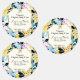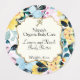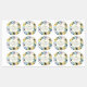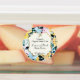 A waterproof product label featuring a yellow and blue floral pattern in the background. Has space for your logo.