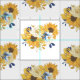 A pattern of bouquets of yellow and blue florals, sunflowers and leaves.