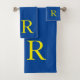 Yellow Blue Monogram Initial Colourful Cute Custom Bath Towel Set