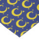 Design features an original marker illustration of a yellow moon and twinkling stars on a midnight blue night sky. Great for prom or an evening gala or event.