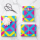 Yellow Blue Pink Square Geometric Pattern Wrapping Paper Sheet