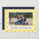 A modern and rustic holiday card featuring personalised photo on a yellow and white gingham inspired background.