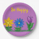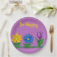 Yellow Blue Purple Hand-Painted Flowers Paper Plate