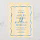 Modern - retro -and elegance, this striped wedding invitation sets the perfect tone for your special day. Featuring soft pastel yellow vertical stripes and a refined blend of classic serif and quirky retro handwritten typography in blue, this design brings together elegance and a little bit of fun.
