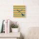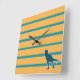 Yellow blue stripes dinosaur t-rex jurassic animal square wall clock