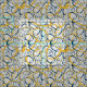 yellow blue tangled loops pattern on light grey fabric