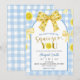 Yellow Coquette Bow Lemon Baby Shower Invitation, Can't Wait To Squeeze You Baby Shower Invite, Editable Blue Plaid Baby Shower