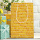 This enchanting gift bag features a charming yellow brick design that pays homage to the beloved Yellow Brick Road of The Wizard of Oz. The hand-illustrated bricks wind playfully across the surface, creating a sense of motion and whimsy. Rendered in warm, golden-yellow tones with soft shading and subtle texture, the pattern feels straight out of a classic storybook. Sturdy white ribbon handles and a matching yellow tissue paper option complete the look, making this bag ideal for themed celebrations, birthdays, or gifts meant to inspire a little adventure.