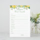 Yellow and sage green flowers, Word Scramble Bridal Shower Game Words Yellow Floral used: gown, wedding vows, groomsmen, bride, reception, speeches, champagne, flower girl, bridesmaids, cake, rings, flowers.