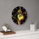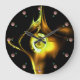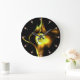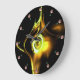 YELLOW BROWN FRACTAL ROSE IN BLACK ,PINK GEMSTONES LARGE CLOCK
