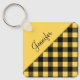 Yellow Buffalo Plaid Check Pattern Name Keychain