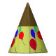 One-of-a-kind Birthday Party Bumble Bee Hats. With the wording, Name, Age, Birthday Party Fun in yellow and red text. Personalised 1st Birthday Party Hats. Personalise with your age and name. Celebrate your birthday for any age with these festive party hats with a cute, smiling yellow bumble bee with black stripes and fluttering wings and colourful flying balloons on back of hats in red, green, blue, orange, yellow. Party hats have a brown and light moss green background for a two tone look. Fun birthday party celebration hats for anyone. Original Graphic Artwork design © 2013, 2016 TamiraZDesigns. All Rights Reserved. Visit my store for more original items: www.zazzle.com/tamirazdesigns*