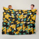 YELLOW CAMELLIAS,WHITE GREEN LEAVES BLACK Floral Fleece Blanket