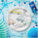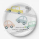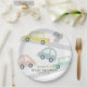 This cute gender-neutral baby shower paper plate features a white background with a yellow car with grey balloons, and several other cars in pastel colours. Personalise it for your needs. You can find matching products at my store.