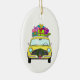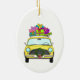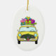 Yellow Car with Christmas Gifts Ceramic Ornament