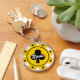 Yellow casino poker chip keychain with custom name or value. Fun casino marker coin design with clover icon. Customisable colours. Yellow and black example. Personalise with name, monogram, initials, dollar amount, denomination or lucky number. Script typography. Also great as wedding party favours.