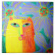My colourful abstract acrylic painting of a yellow cat printed on ceramic tile