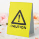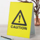 Yellow caution warning dangerous wet floor Table Tent Sign. Create your own symbol for hazardous situations. Also handy as watch your step notice for uneven floors, dangerous threshold, entrance, office, shop, store, mall, hotel or other retail business. Customisable background colour. Tripping or slippery danger symbol.
