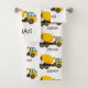 Yellow cement mixer/construction truck bath towel set personalised with your child's name for his bathroom