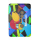 Yellow cement truck on colourful geometric shapes with personalised child's name in white.