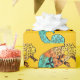 Perfect for kid's wrapping paper with original illustration design from watercolour and ink by artist Sacha Grossel of yellow, brown and blue chameleon against mustard yellow background. This quirky and special reptile is cute and bright. For lizard and reptile lovers everywhere.