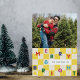 This whimsical holiday photo card features the phrase "Merry & Bright" in bold, colorful lettering, placed over a modern, yellow checkerboard pattern. The back of the card features a coordinating checkerboard pattern adorned with a bunch of festive stars. This playful card is perfect for kids and teens!