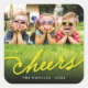 Yellow Cheers Calligraphy Script Photo Holiday Square Sticker