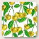 Yellow cherries on white coaster