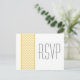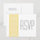 Chic and modern Chevron Border Wedding Response Postcard featuring a simple chevron pattern border in yellow and white. This stylish design will set the tone for an elegant wedding. Easy to customise, simply add your wedding details in the text fields provided. Click "Customise It" to find more personalisation options.