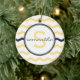 Butter yellow and charcoal grey chevron pattern with name and monogram.