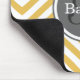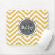 Monogrammed white and yellow chevron zigzag pattern with custom name. Cute, girly, trendy modern geometric design featuring a grey circle nameplate that is easily customised with your first name and last name initial letter.