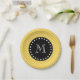 Yellow Chevron Pattern | Black Monogram Paper Plate