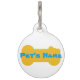 Graphic yellow chewed bone with customisable funny blue lettering. Dog tag. You can easily change text (colour, font and position) by clicking the customise button. Matching products: dog bowl, dog bed, dog shirt.